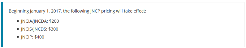 I don’t remember the price of the JNCIP exam because i did it 3 years ago, but by the priced published by PearsonVue it increased apparently