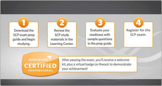 A Solarwinds permite aos Network Engineers fazerem o Solarwinds Certified Professional (SCP) sem qualquer custo em apenas 4 passos.Este exame é realizado online sem necessitar de deslocar-se a uma centro Prometric/Pearsonvue. Existem diversos recursos como o Learning Center e a Thwack Community como boas fontes de informação para o estudo.